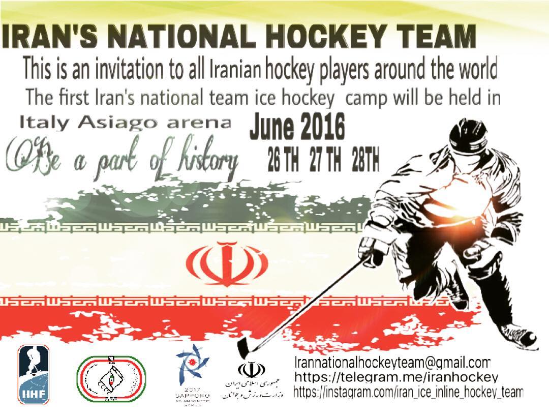 Iran's national ice hockey team will be competed in 2017 Sapporo asian winter games. In this regard, iran skating federation invites all Iranian hockey players around the world to join in the first camp of national team which will be held in Italy asiago arena from 26 till 28 June 2016.