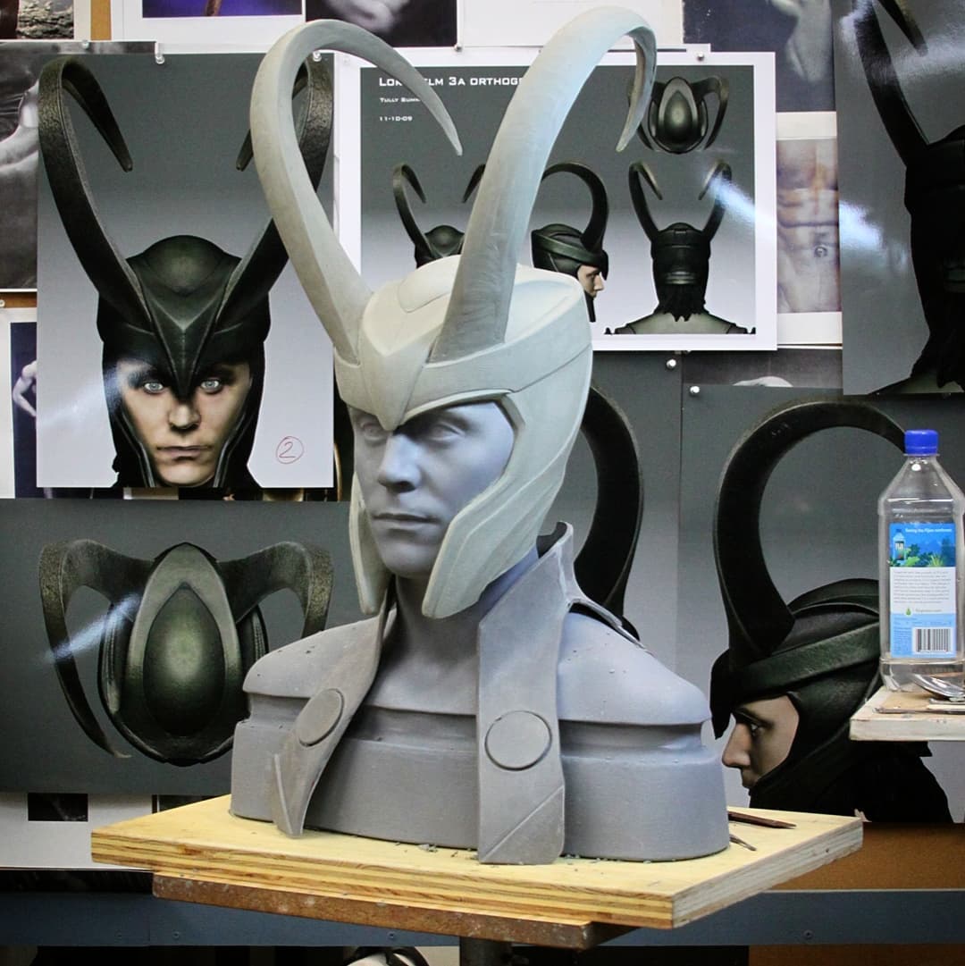 Throwback to the early days of the MCU. Here's some bts shots of the Loki helmet clay sculpt and Jose and Bryan Duly working on the helmet for Thor(2011).