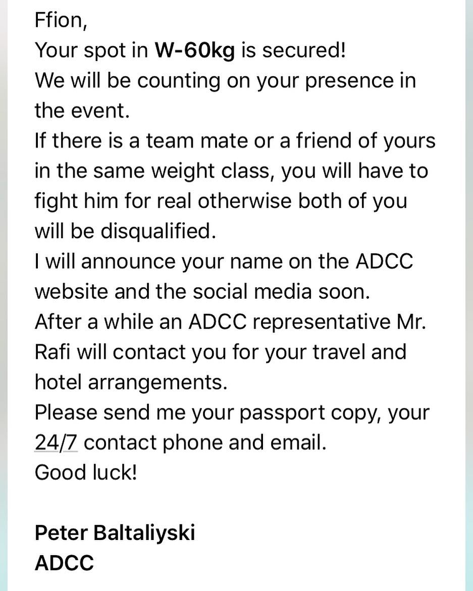 Received an invite to ADCC!! 😱Thanks so much @adccsubmission @mojassim80 🤼♀️ it’s gonna be spicy 🌶