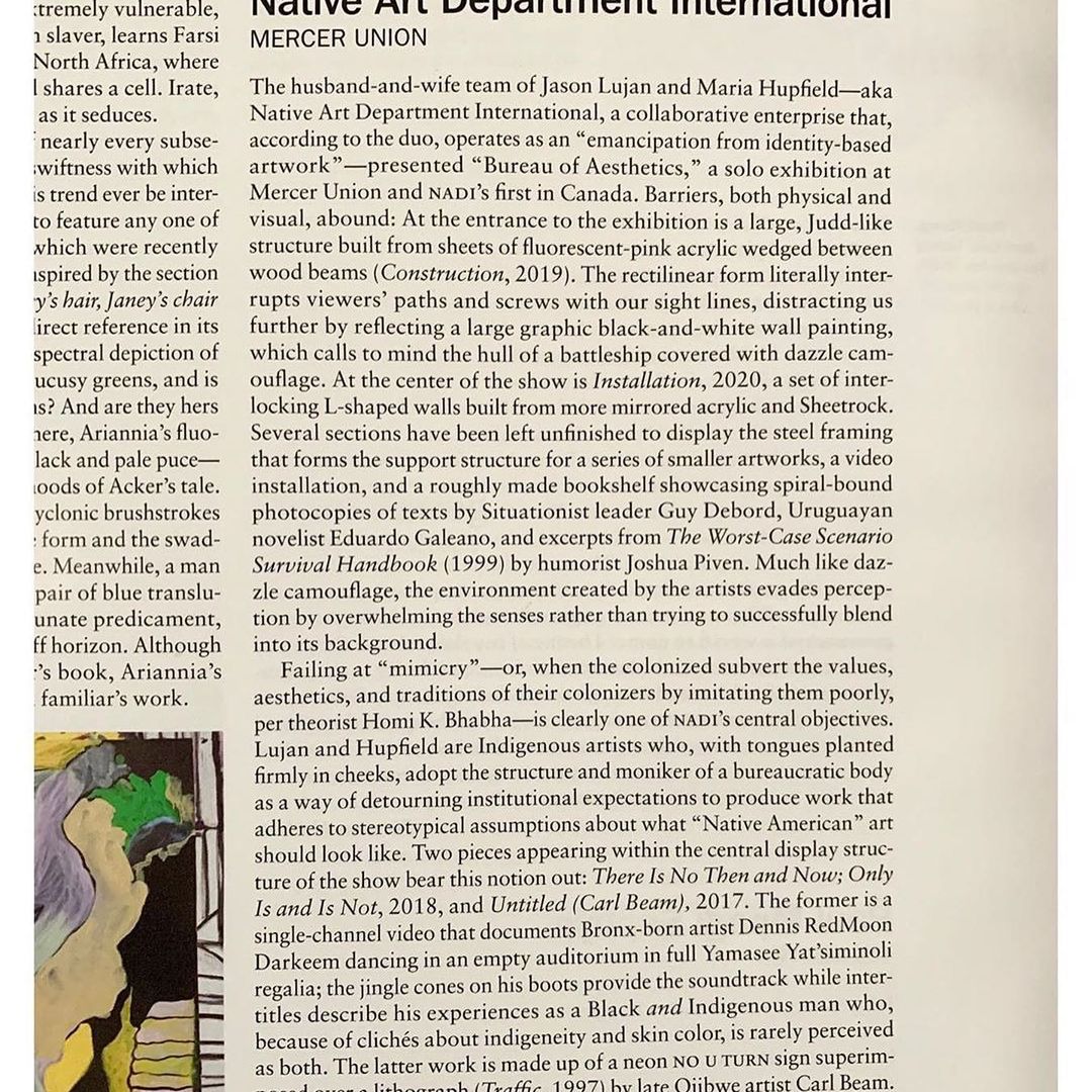 Native Art Department International reviewed in Artforum. 🎯🎯🎯