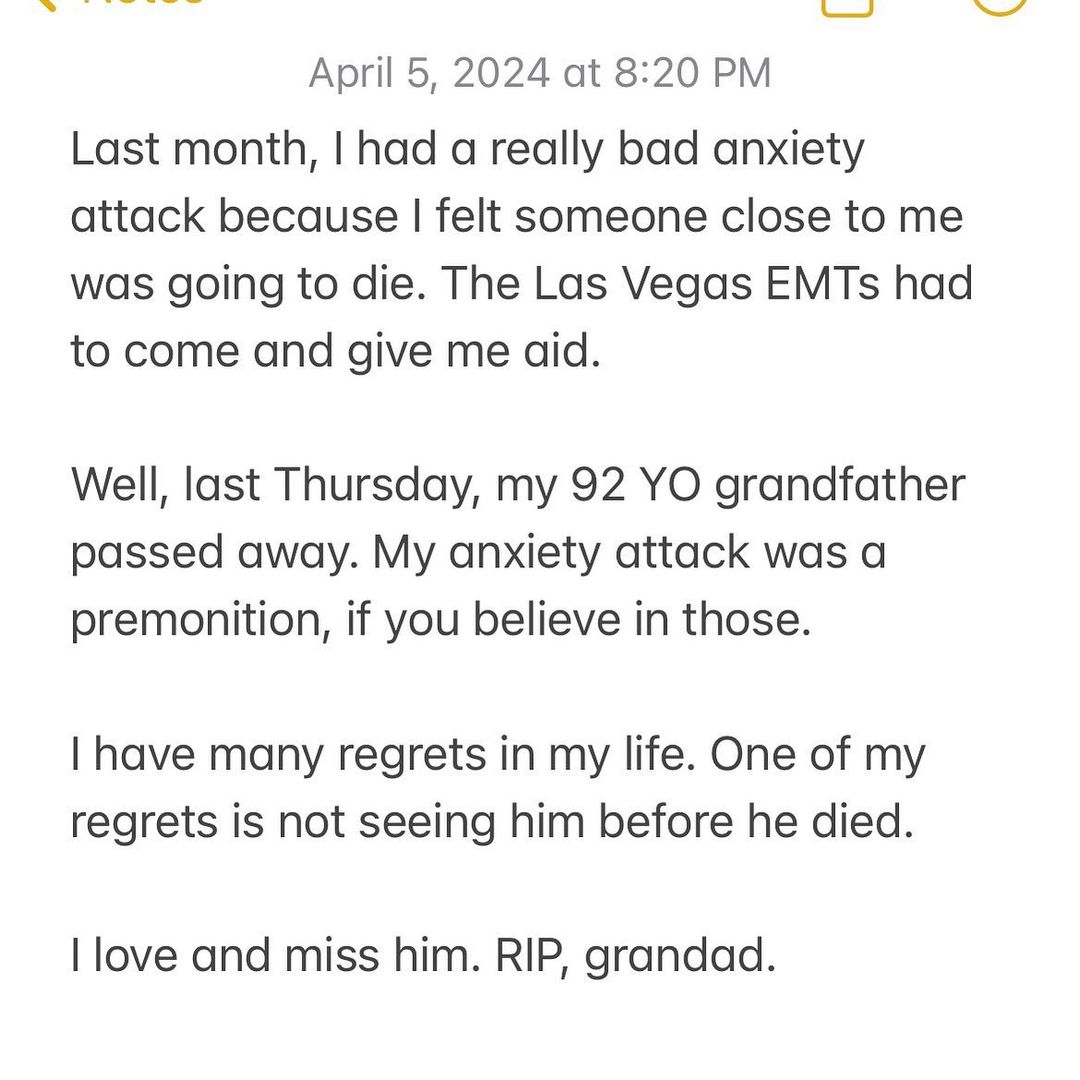 Cherish those you love and visit and call them often. Not seeing him before he died will probably be one of my biggest regrets. #love #instagram #grandfather #death #vegas #anxiety