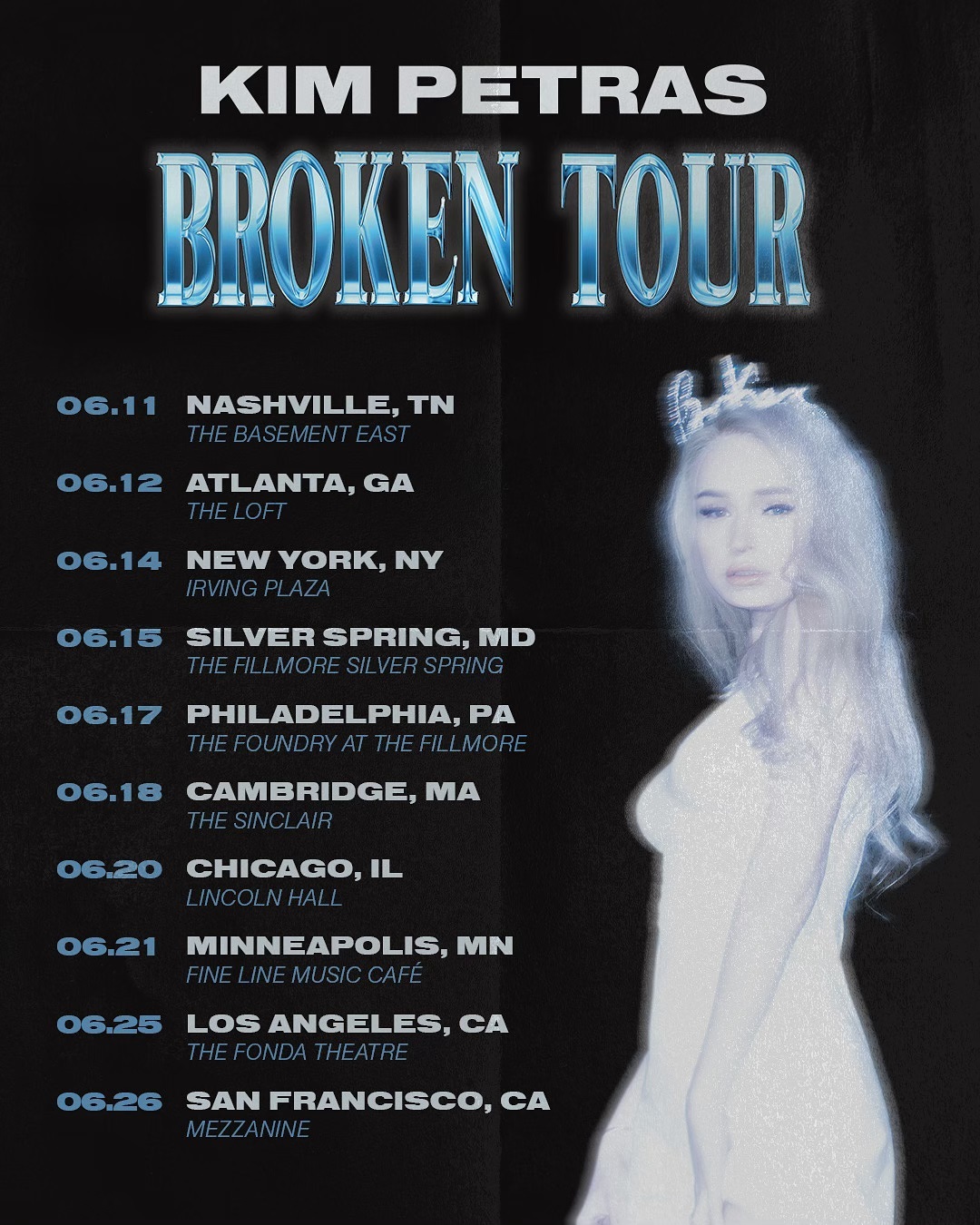 #BROKENTOUR COMING TO UR STEP DADS HOUSE THIS JUNE 🖤 babes I cant wait … tickets on sale 10am Friday but if you’re a real one go to KIMPETRAS.com to sign up for early access