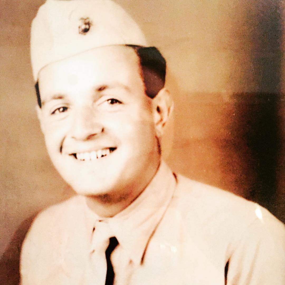 I honor this man today. Art Mastro. Son of Italian immigrants. He signed up for the Marines during WW2 at age 19 because his family was so poor. He was 4th Division Marine, he fought in the Pacific; Roi-Namur, Saipan, Tinian and Iwo Jima. Purple Heart recipient which, if you ask him about today his response is simply "hey, I was lucky I didn't die that day." In other words my grandfather is a bad ass. He laughs when I tell him he's a walking piece of history. Not many guys his age left. He's 91 years young and still sharp as ever and full of stories. They don't make me like they use to. Love you papa ❤️ #veteransday2015 #marines #semperfi #purpleheart 💜 #italianstallion #grandparents #theydontmkethemliketheyuseto