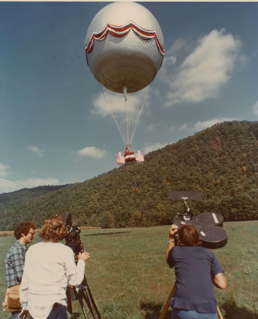 #TBT to our 1976 film To Fly! Unlike today's hot air balloons, in 1789 balloons used helium to fly. Greg and the team had to find a helium balloon and an expert pilot to navigate. The helium was provided by the U.S. Navy, who gave it to the team for free because the film also features their Blue Angel Flight Squadron!