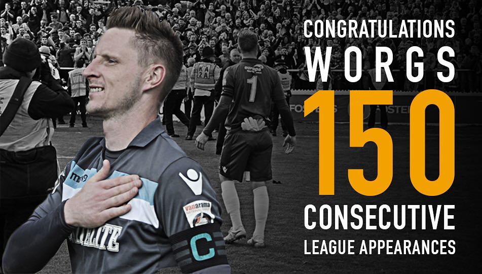 Congratulations to Lee Worgan - making his 150th consecutive league appearance for Maidstone United today. #teamworgs