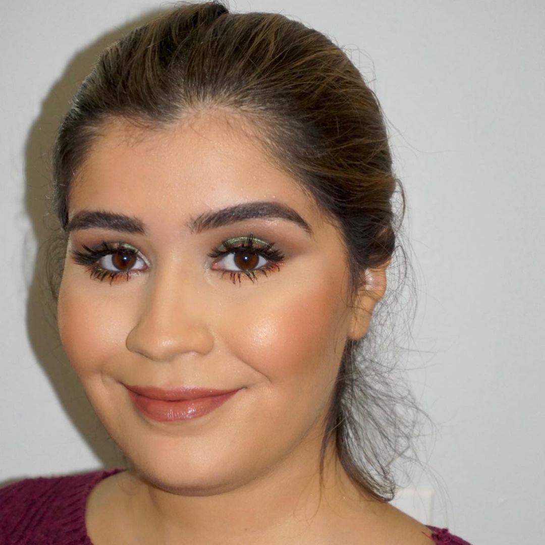 She is literally the sweetest. Gave her this warm smokey eye with pops of green to go with her flawless dewey skin. .