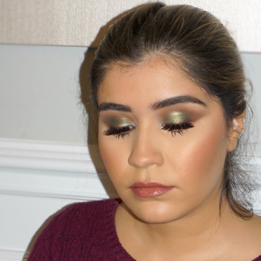 She is literally the sweetest. Gave her this warm smokey eye with pops of green to go with her flawless dewey skin. .