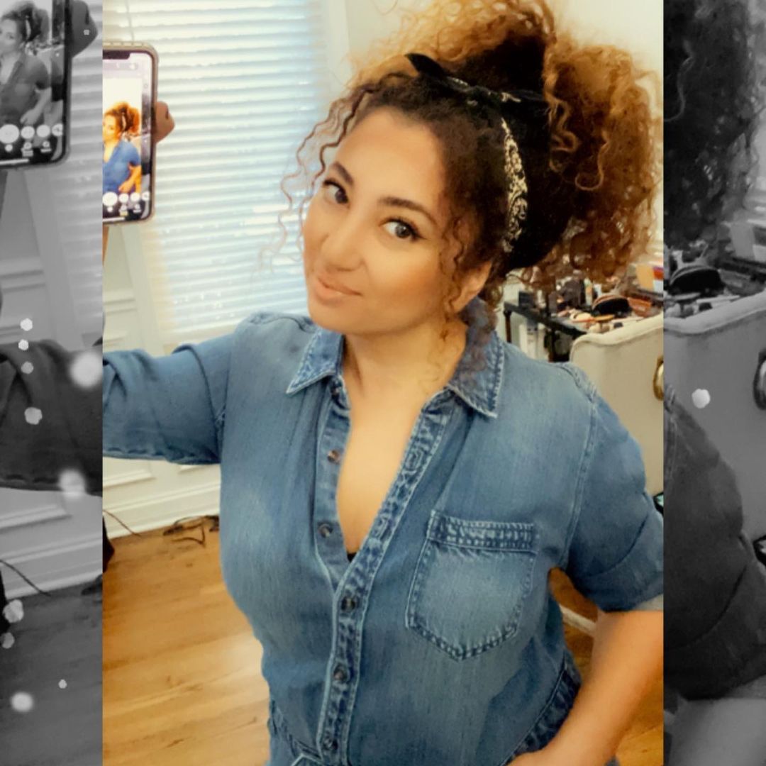 Curly Top knots & Bandanas. . . . . #topknot #curlyhair #bandana #bandanastyle #bandanascarf #afro #denim #mua #chicagomua #chicagomakeupartist #workmode #leatherleggings #comfy #comfyoutfit #filter #selfie