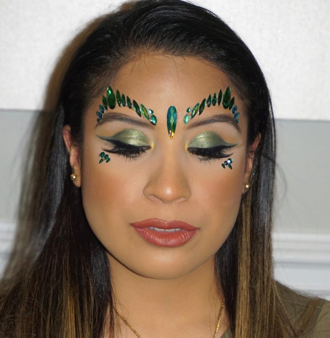 #halloween #halloweencostume #halloween2020 #halloweenmakeup #facejewels #mua #chicagomua #chicagomakeupartist #greeneyeshadow #wingliner #longwingliner