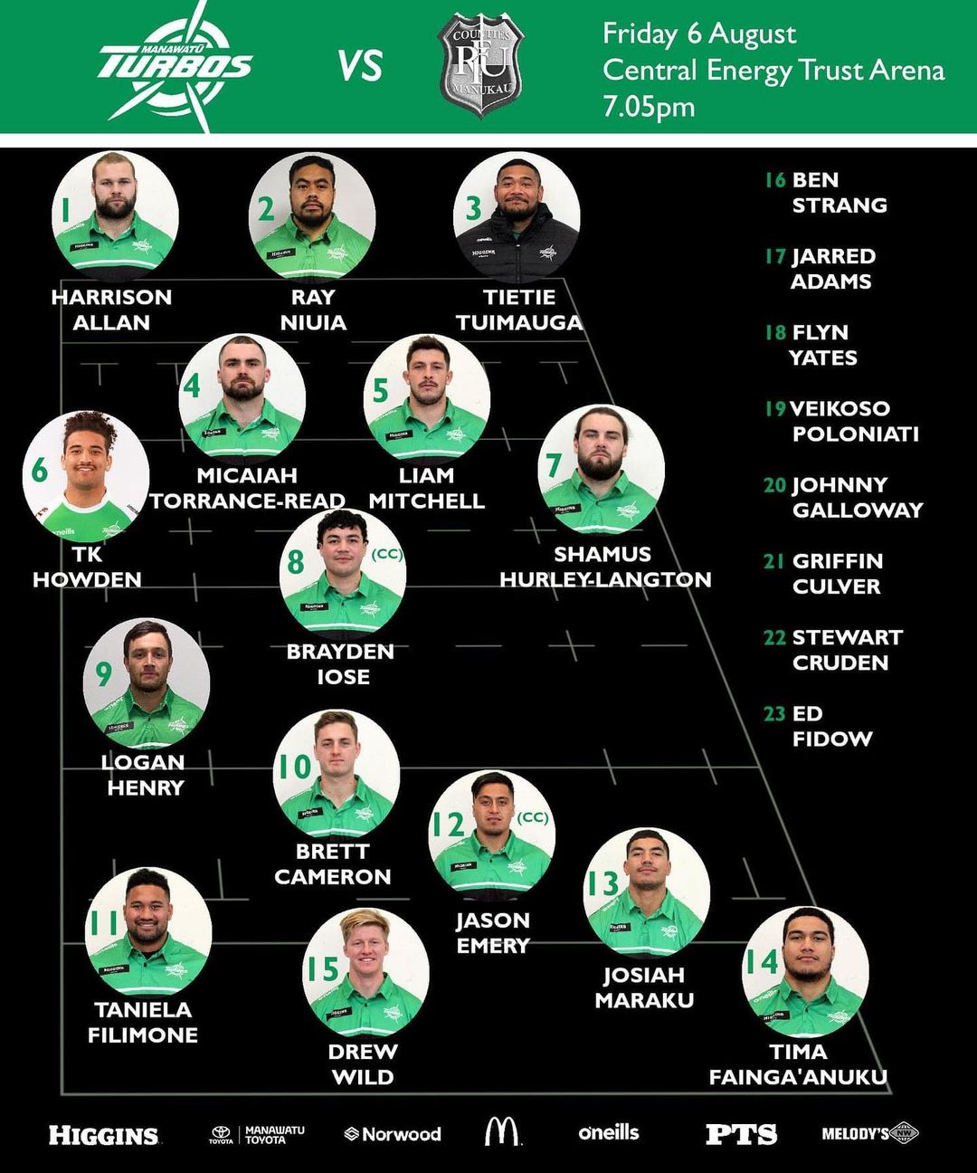 Six players will make their starting debut for the Manawatū Turbos in their season opener against Counties Manukau at Central Energy Trust Arena at 7.05pm on Friday.