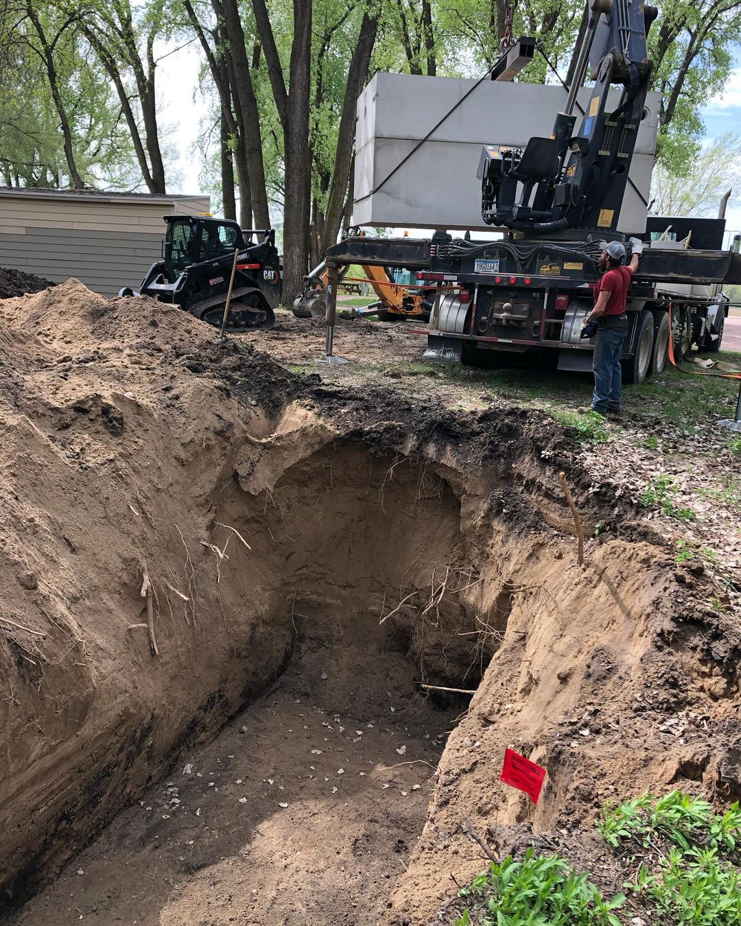 Two quick tanks installed at a campground in Luverne MN this past week. One 2500 single compartment and one 2400 gallon combination (1500 septic, 900 gallon pump tank). Tanks are twinned together to service the shower house. Drainfield will be installed next.