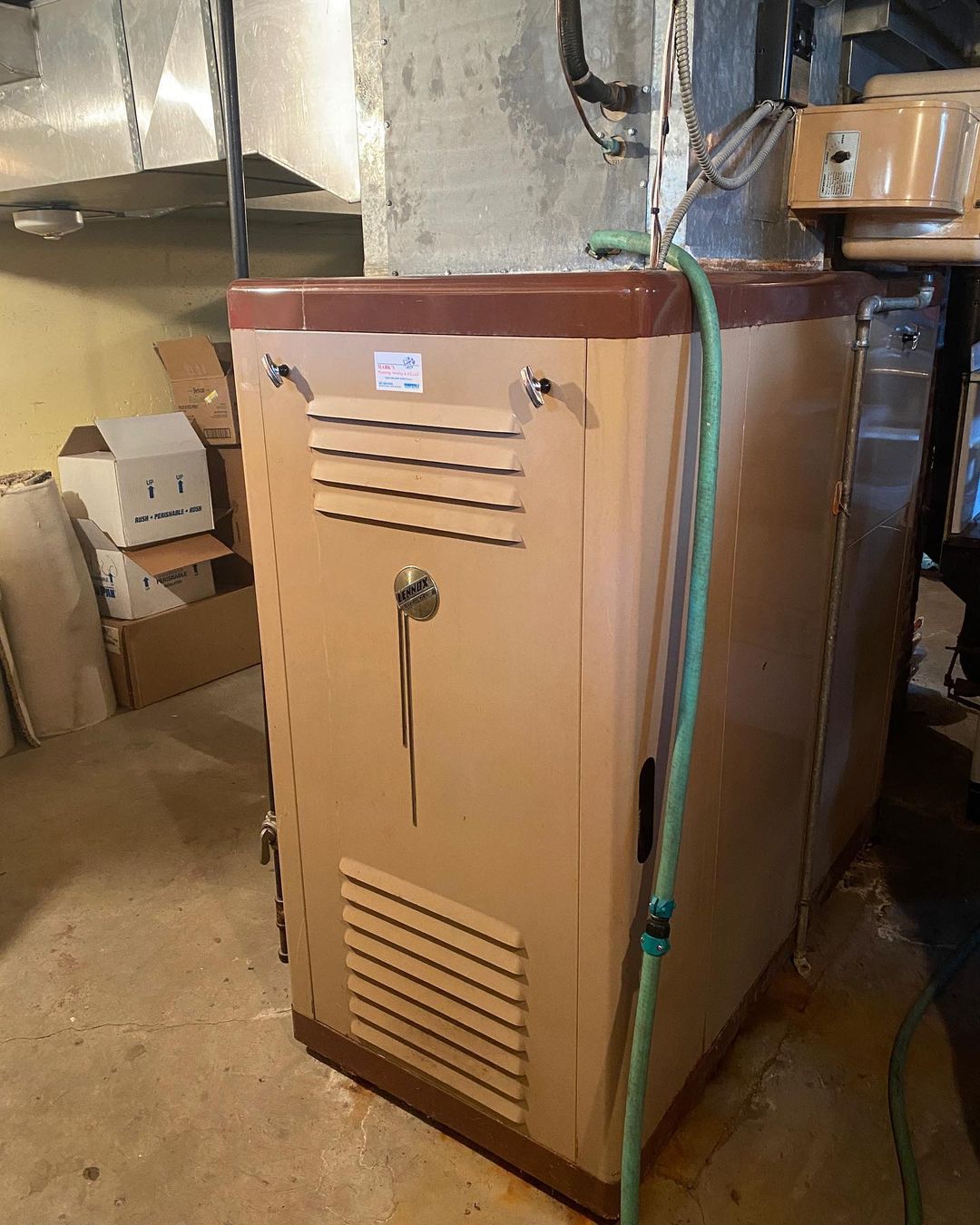 New 90k BTU, 96% efficient furnace to replace a 50+ year old Lennox furnace. These old units are way too big to come out as one piece so they get taken apart and hauled out as pieces. The cost difference in their natural gas bill this winter will be crazy.