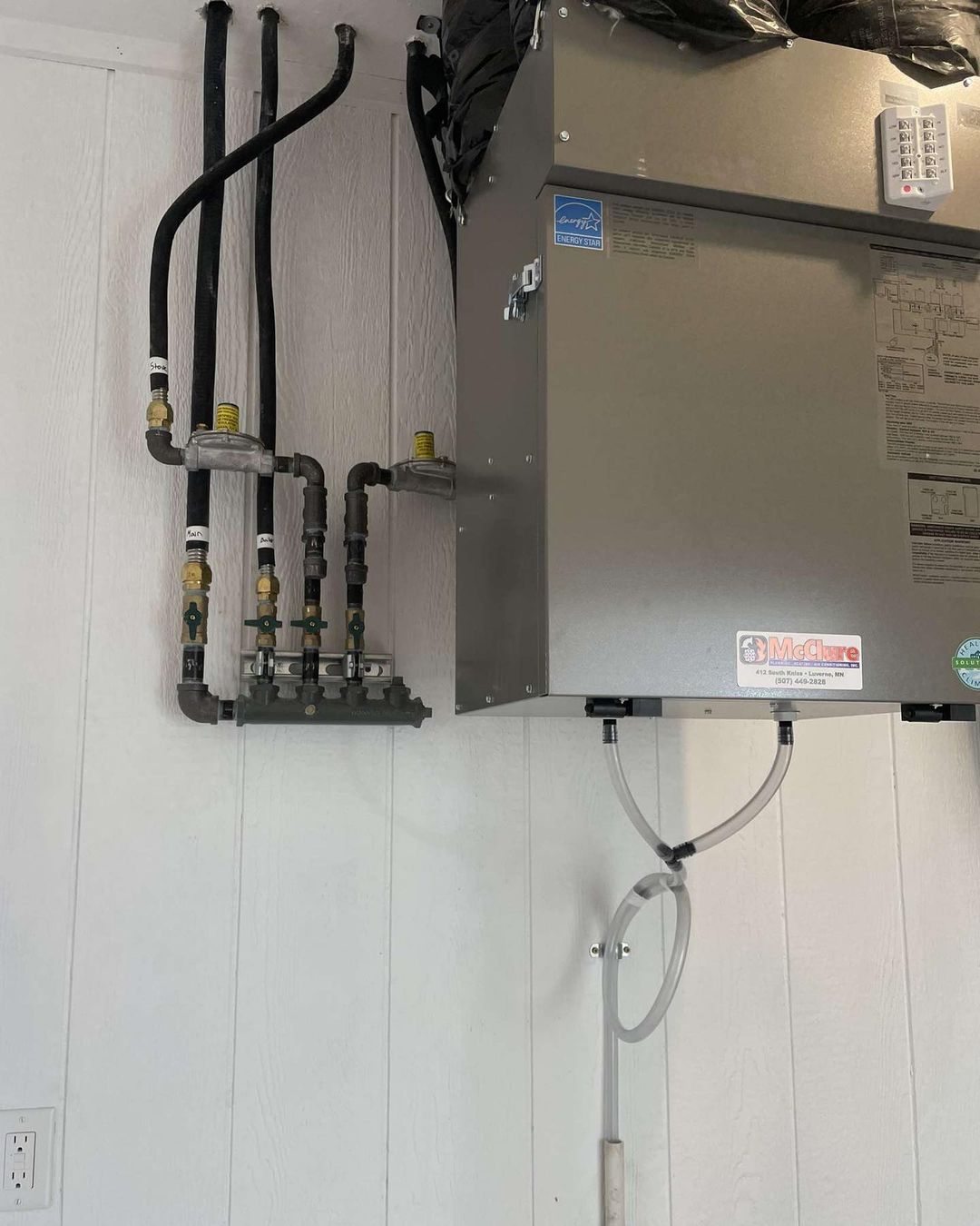 This 80k BTU navien tankless boiler was just installed and looks flawless. There are two zones one that handles the garage and the other that handles the house. This house also has an air handler and a heat exchanger. Slab on grade houses like this one have the most efficient temperature control when you cool from the top down with the air handler and heat from the ground up with the infloor heat.