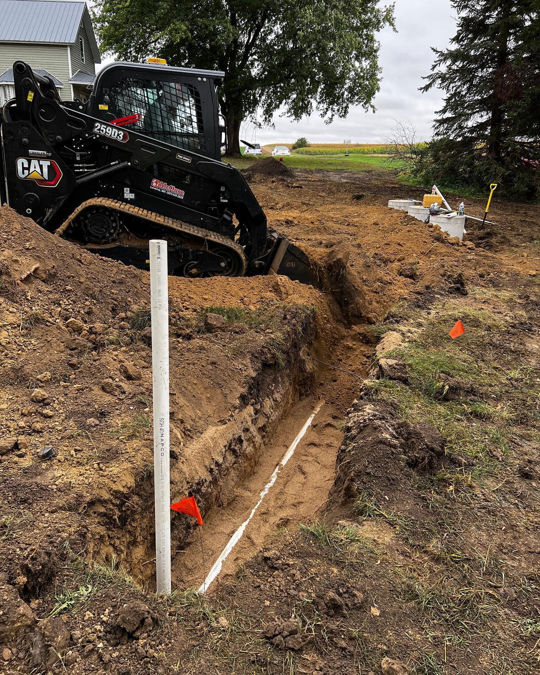 Another good looking septic system installed by Cole and Jesse. This system has a 2400 gallon dual compartment tank (1500 gallon septic, 900 gallon pump) and an 80’ long drainfield.