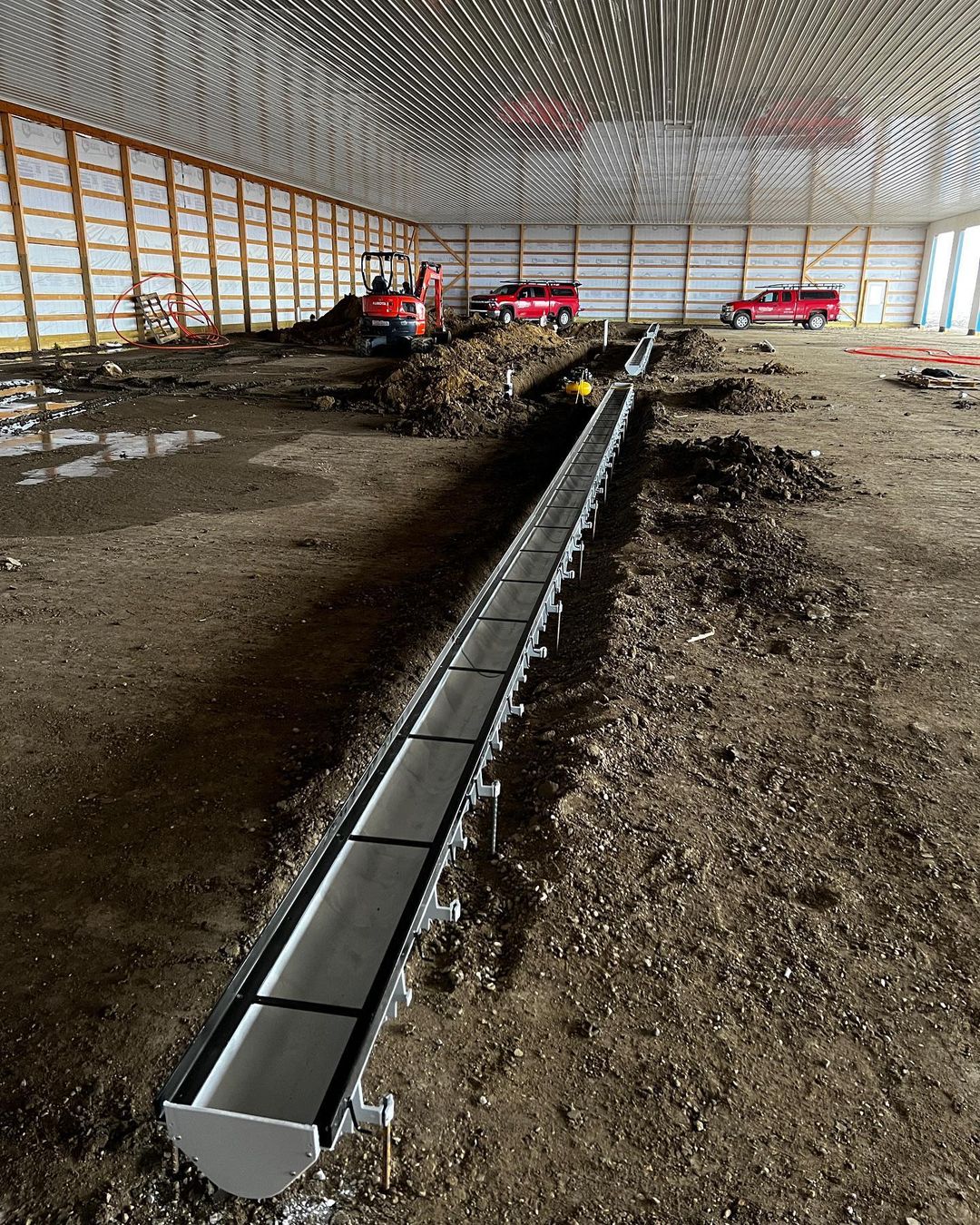 Another good looking trench drain install. This job is for a new truck storage shed. Job includes 3- 48’ long trench drains, 35 cubic feet waste oil pit and a single compartment 2500 gallon holding tank.