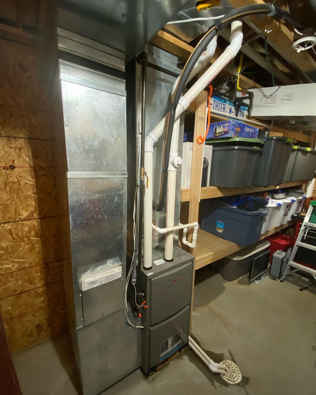 Austin and Dyllon recently swapped out this furnace that had a heat exchanger in terrible shape. They found several large cracks which would leak exhaust fumes into the airflow delivered to the house which is definitely not a good thing. They installed a more efficient ML193 Lennox 70k BTU unit in its place. Good looking install!