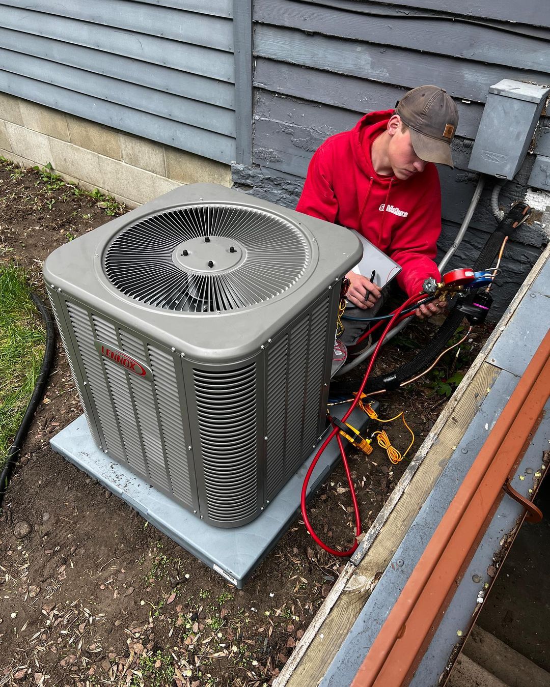 Austin, Matt and Colin replaced another system that outlasted it’s competitors by many years. This system ran strong for 35 years! We installed a Lennox ML196UH070XE36B 70k BTU furnace with a Lennox 14 seer, 2 ton A/C. Many more years of efficient heating and cooling to come!