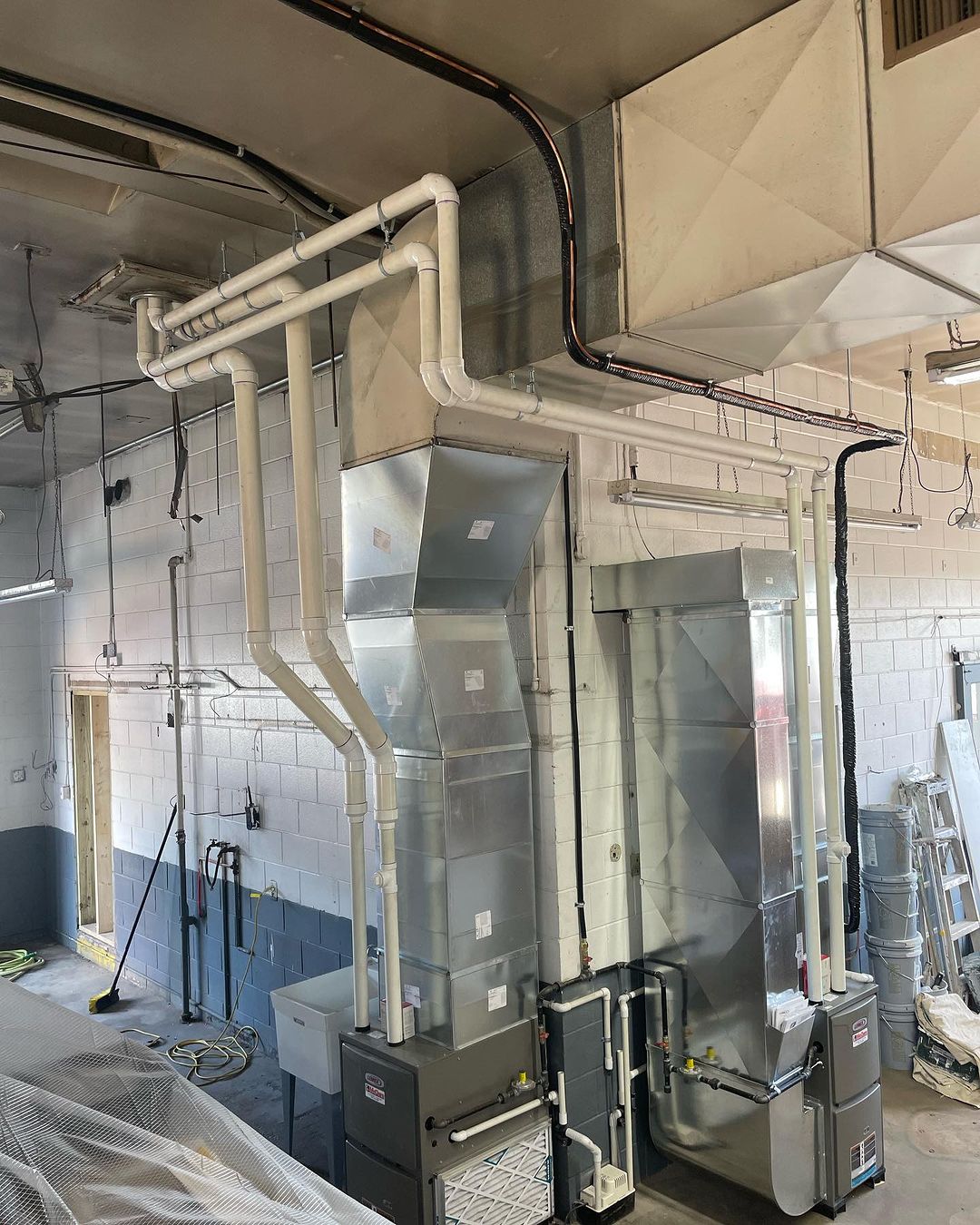 The HVAC crew installed this equipment last week for a new business in Luverne MN. We added air conditioning to the system that will temper the offices/lobby area. Using a ducted system with a furnace in the shop area makes the space much more comfortable and disperses heat evenly compared to a radiant/unit heater. Another quality job complete. Nice job guys!