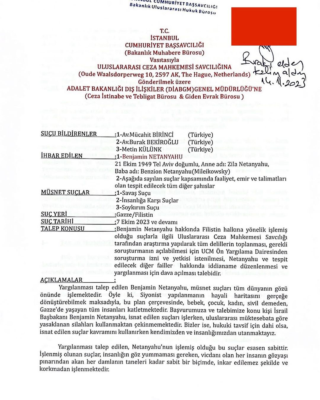 📌ULUSLARARASI CEZA MAHKEMESİ SAVCILIĞINA GÖNDERİLMEK ÜZERE İSRAİL’in 🛜❌❌❌❌HİTLERİ @netanyahu TARAFINDAN UYGULANAN GAZZEDEKİ SOYKIRIMA İLİŞKİN BAŞVURUMUZU YAPTIK.