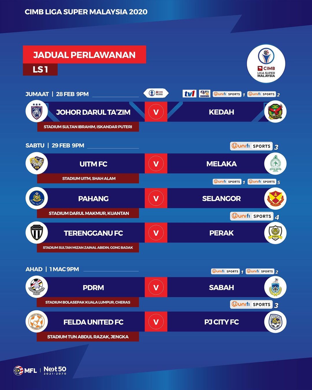 JADUAL PERLAWANAN CIMB LIGA SUPER 2020 PUSINGAN LS1