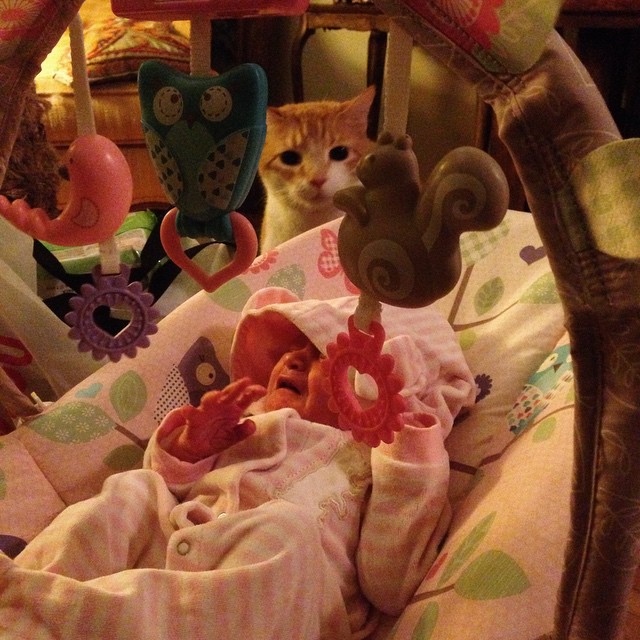 Rigby Marie Cassady was born June 10, 2015 and she is finally home! Her curious protector is taking first shift.