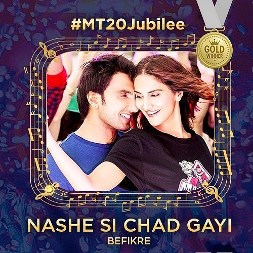 Nasha toh chadhna hi tha aur #MT20Jubilee Golden Disc toh milna hi tha. We congratulate @vishaldadlani1, @shekharravjiani & @arijitsingh__ for composing and singing #NasheSeChadGayi.
