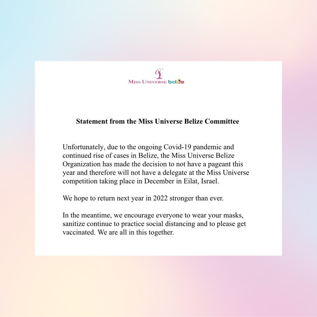 Announcement on behalf of the Miss Universe Belize Organization #missuniverse