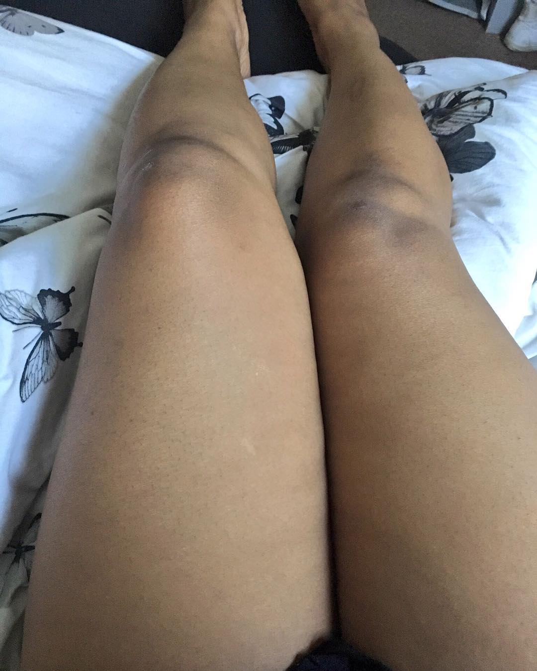 My battered legs; childhood scrapes, falling flat on my face earlier this year, falling under a train three years ago