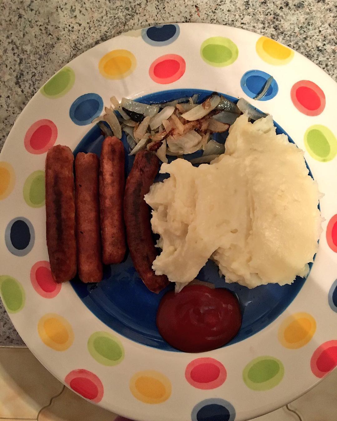 Irish skinless sausages and mash with caramelised onions #Dinner #TradLife