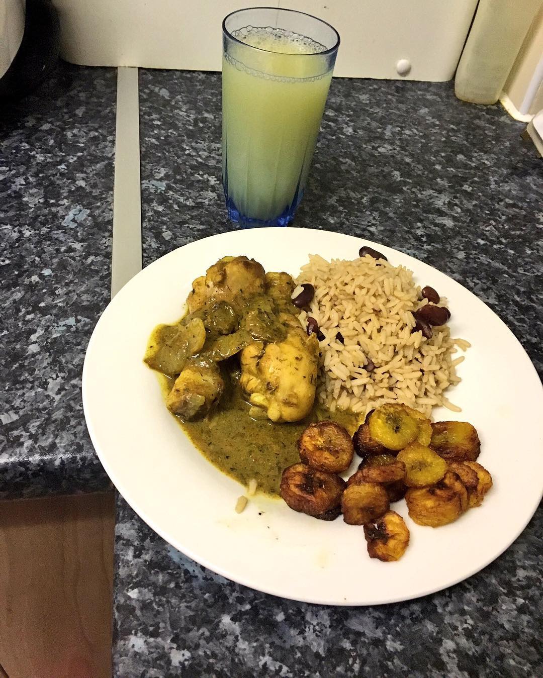 Damn, I can throw down; kidney bean rice, coconut curried chicken and fried plantain #CaribbeanCooking #Dinner #HomeCooking #TradWife