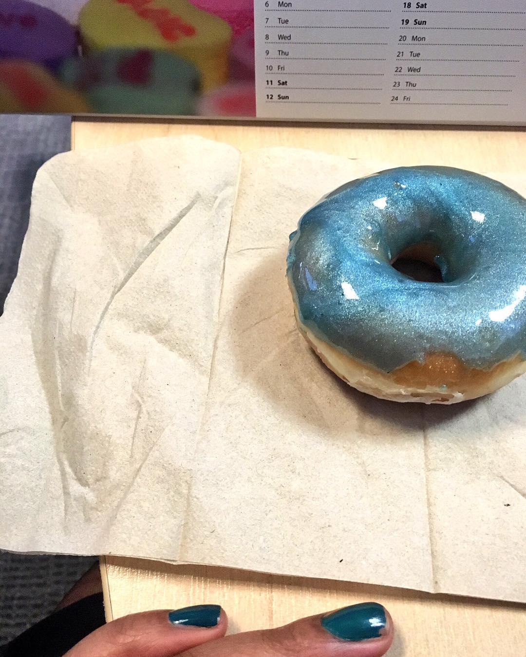 So my boss treated the entire office to #krispykremeuk because of our efforts, the bubble gum flavoured icing matches my nail polish
