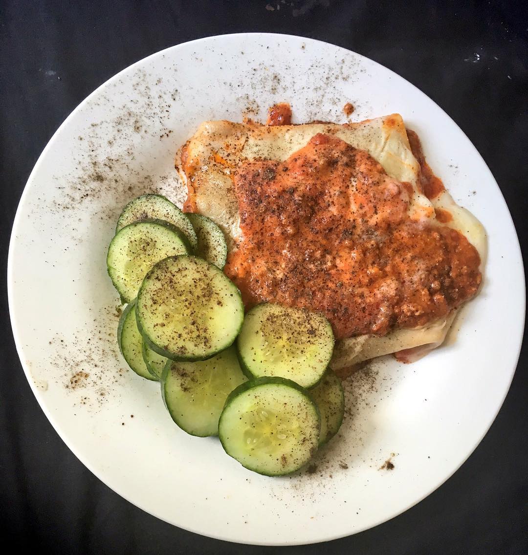 Upside down lasagne with cucumber and a lot of pepper #LateLunch