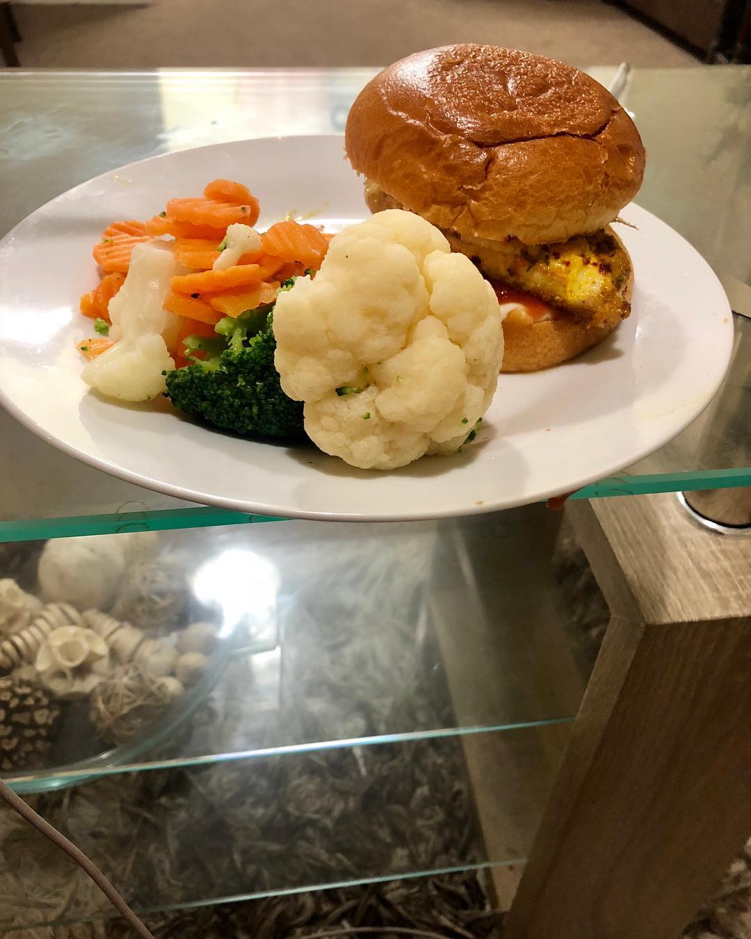 Homemade chicken breast sandwich and veggies