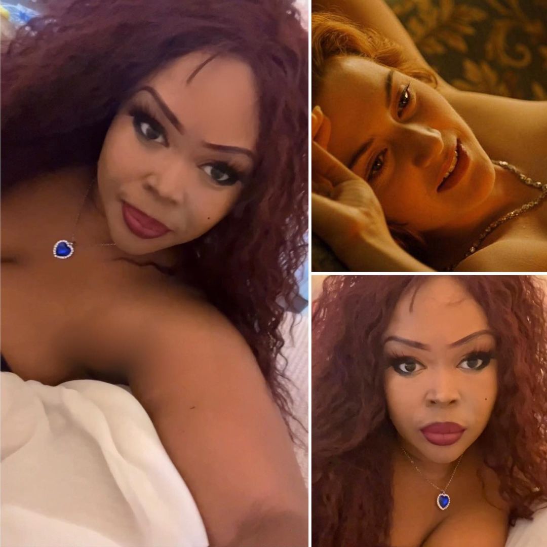 I suspect this is the last dress up for a while but I thought I’d give you a bit of #RoseDeWittBukater/#RoseDawson from #Titanic because I love #KateWinslet and I had the red wig out and a mini heart of the ocean necklace