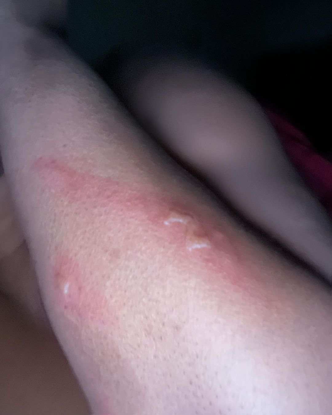I am guessing that I rolled over onto the hot water bottle that was under my duvet around 4am maybe even later, keep in mind I had filled the hot water bottle about 10pm or 11pm and it was still hot enough to do this to me. Be careful with a hot water bottle in your bed #HotWaterBottle #HotWaterBottleDangers