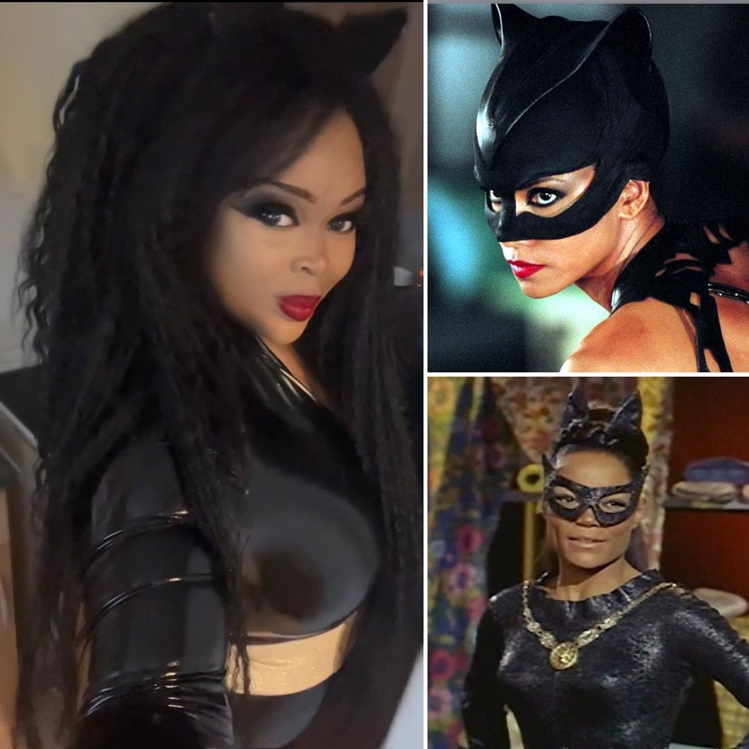 I’m wearing more eyeliner than a drag queen but I’m wearing a PVC catsuit before work with no control underwear so that’s a win. I’m super girl and I’m here to save the world whilst dressed as #Catwoman and I was inspired by #HalleBerry and #EarthaKitt @halleberry