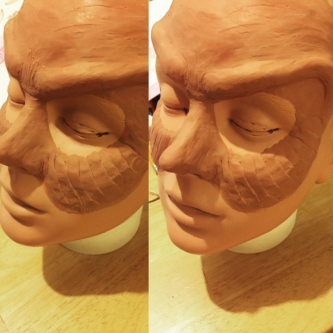 Started my first sculpt today. This is the first hour's work, top piece. Will be getting lighter fluid to smooth tomorrow, add details and then work the other pieces. Then details, etc. This is crazy fun. #happybirthdayme #timetocreate #sfxmakeup #theresafirsttimeforeverything