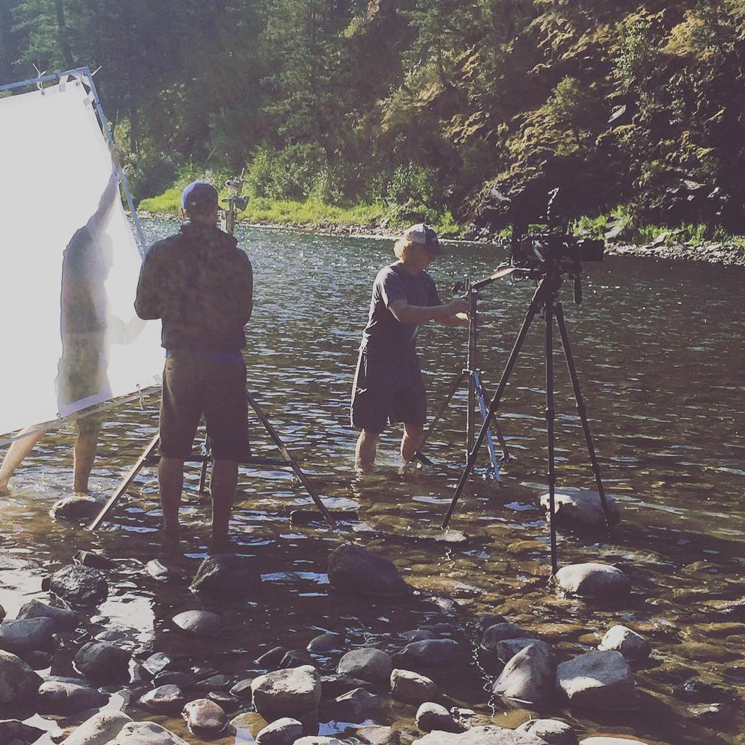 Sometimes to get the right shot in MT, you have to roll up your sleeves, er, pants, and get creative! #onsetlife #makeuponlocation