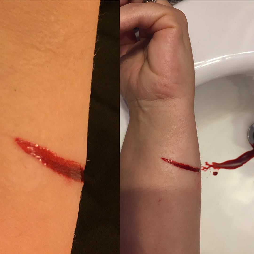Clean cut. Just a flesh wound 😉 #goremakeup #sfxmakeup #thirddegreesilicone #bennyeblood