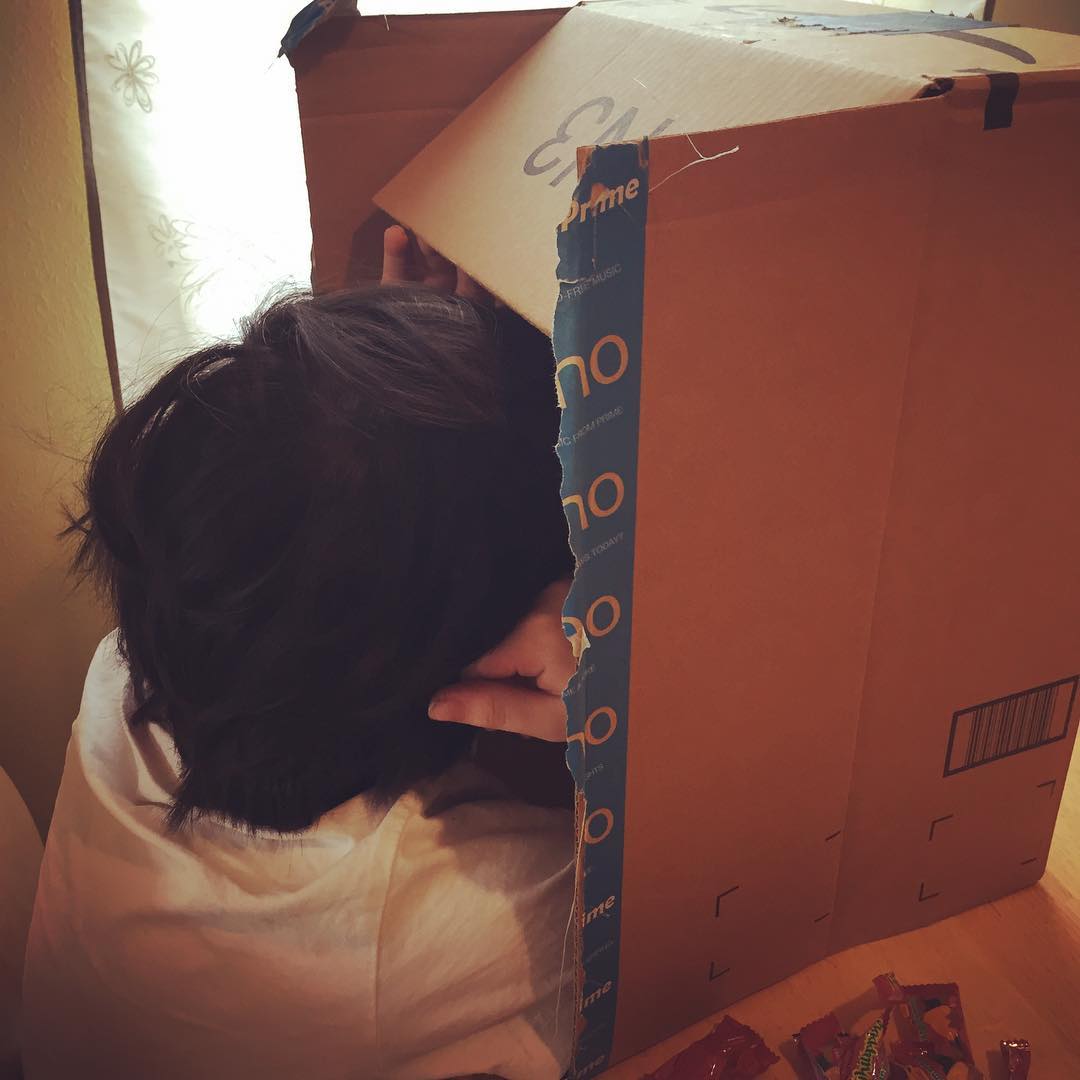 Sometimes you just need some space (he has an iPad and snacks in there.) 💕