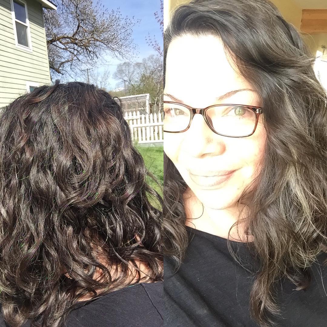 Wavy in the front, Curly in the back đŸ¤”still, seems to be getting healthier! Third wash. #curlygirlmethod #healthyhairjourney #devacurls #lowpoo