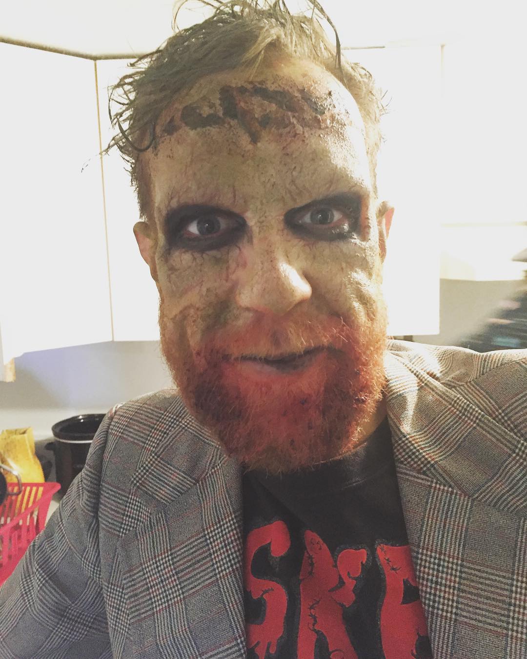 This guy's been eating more than pizza on this shoot 😉#musicvideoshoot #theraminrap #makeupeffects