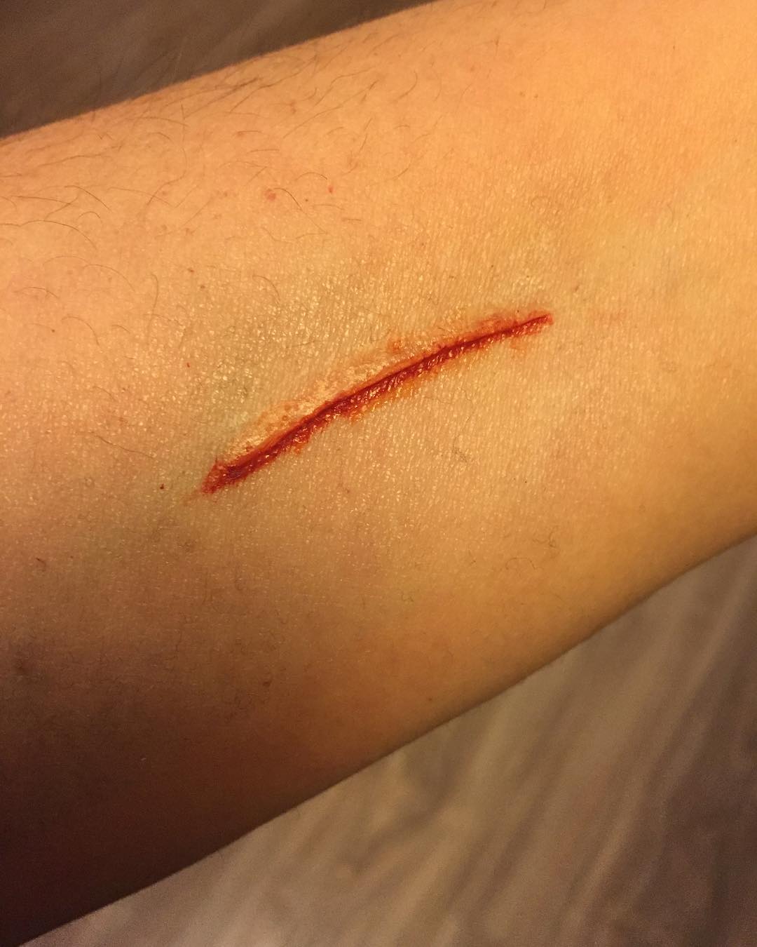 Gash test. Just a flesh wound. #noflilter #makeupeffects #europeanbodyart #fleetstreetbloodworks #titanicfx