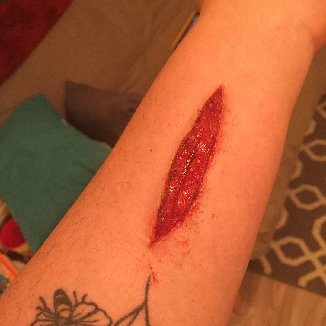 3 inch stab wound. Flat mold by me. #makeupeffects #goremakeup #makeupforfilm #prostheticmakeup #titanicfx #frendsbeauty