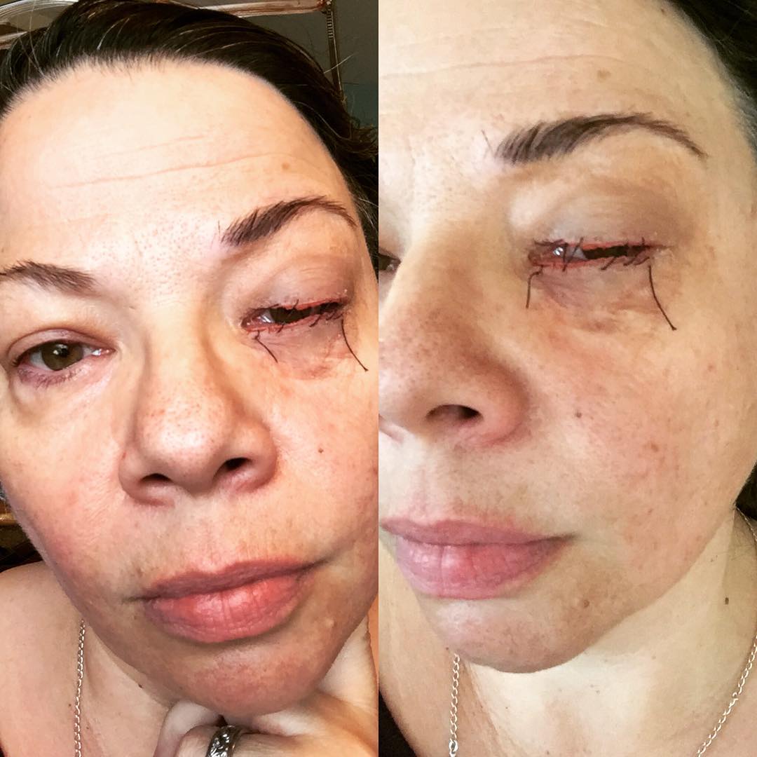 Fave in the series of almost sewn shut eyes (scripted that the characters can still see through them) this is one upper and one lower piece with the thread in the middle. Great wearability. Still playing with threading and lash designs.