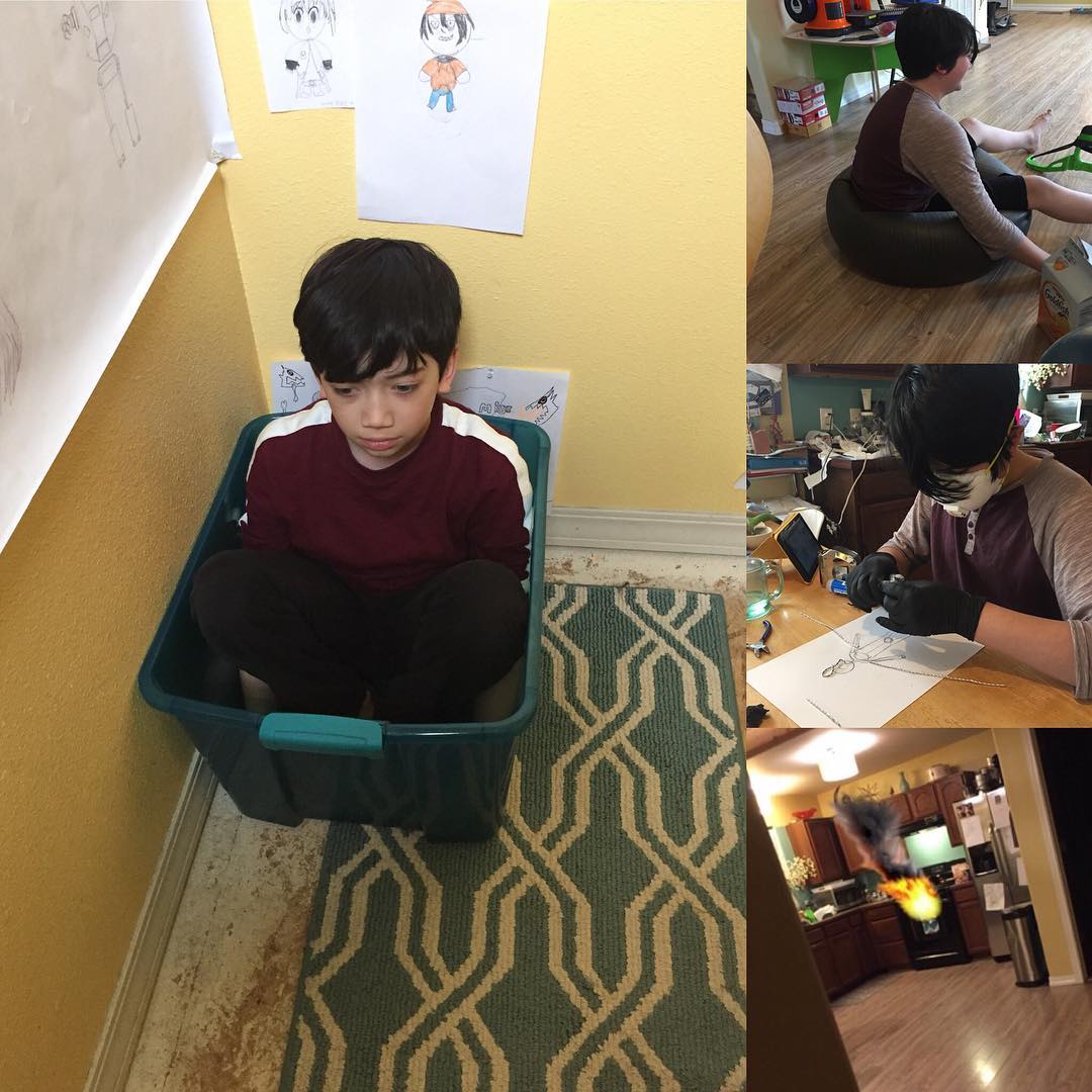 Sometimes homeschool days are just sitting in strange things, making your own puppet armature and practicing some visual effects :) #homeschoolchillin #slowchildhood #ififitsisits