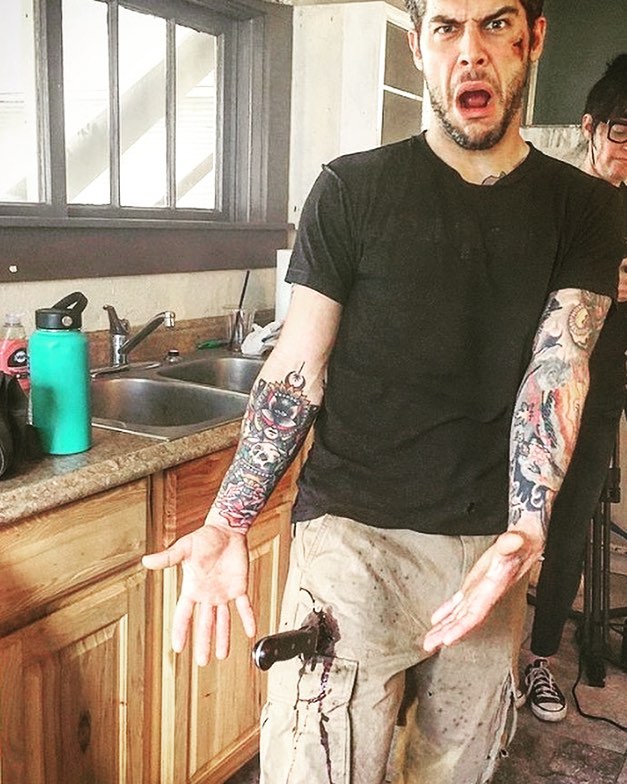 So much fun today on set. Much stabbing. 😉#zeropointfilm #makeupeffects #propmaking #somuchfakeblood Actor is @jessie.kwasney