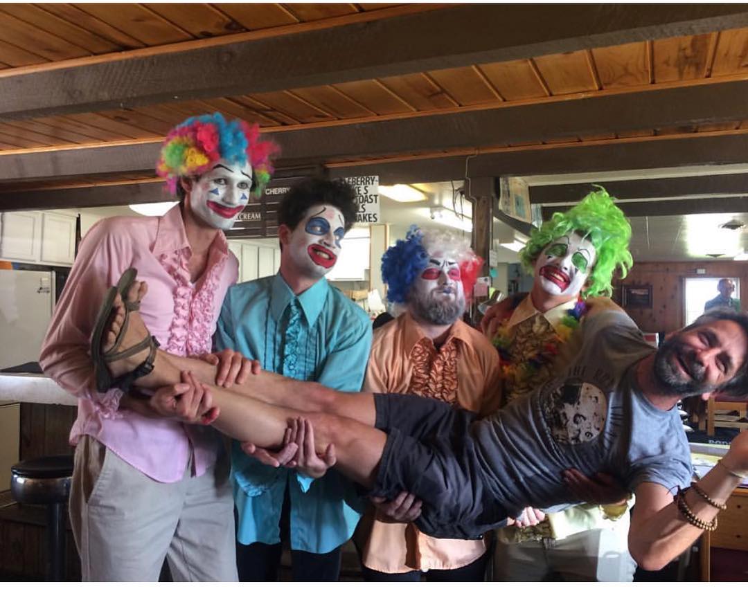 Oh today was fun! Here’s our director and his clown posse 🤡#thefoghorntrilogy #filmmakingfun #makeupeffects #clownmakeup #onsetlife #independentfilm #mikesteinberg