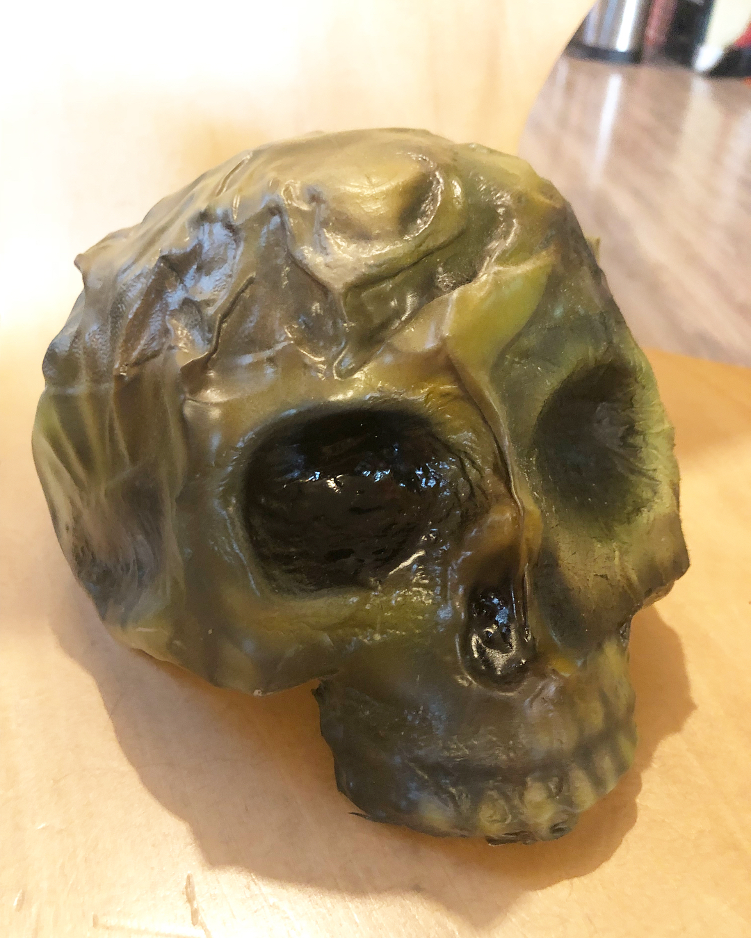 Well THAT was super fun! Milk jug skull, moldy and gross style (let’s pretend the label remnants are an eye patch of sorts 😉) Every few days (because I have 2 preteen boys) I can make another and play with different paint schemes. We will have quite the graveyard by Halloween! Tutorials are all over Instructables and YouTube - have a go! #halloweendiy #spookycrafts #propmaking all painted with #timgoresbloodline airbrush paints.