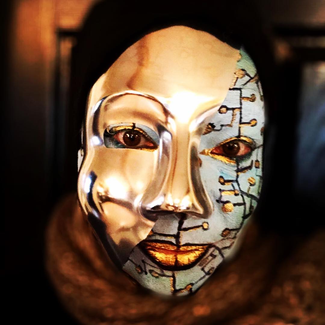 20 minute alien/cyborg who’s face is half off, exposing circuitry. Not the tidiest but still fun 😉 Happy Halloween!! #effectsmakeup #halloweenmakeup #cyborgmakeup #quickfacepaint